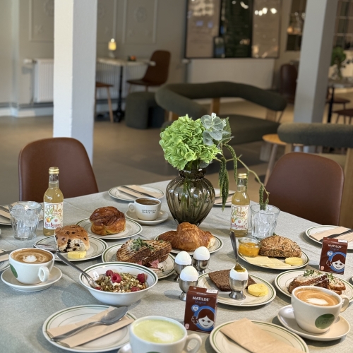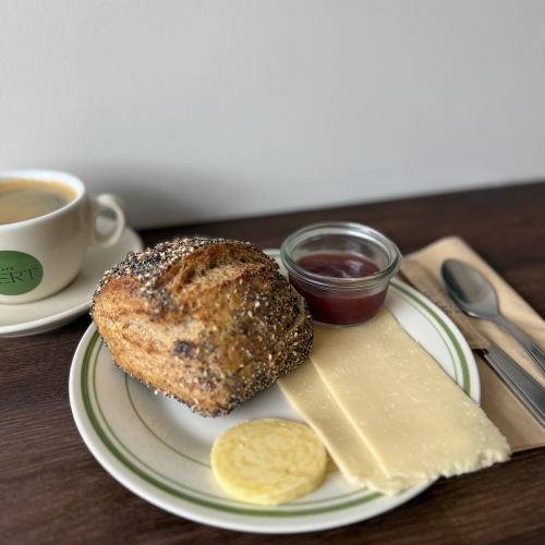 | Bolle Vælg mellem te-, gulerod- el. chokoladebolle Hertil Arla Unika smør m. Læsø salt Serveres med Gl. knas og marmelade +20,- Serveres med Sønderjysk spegepølse +15,- |