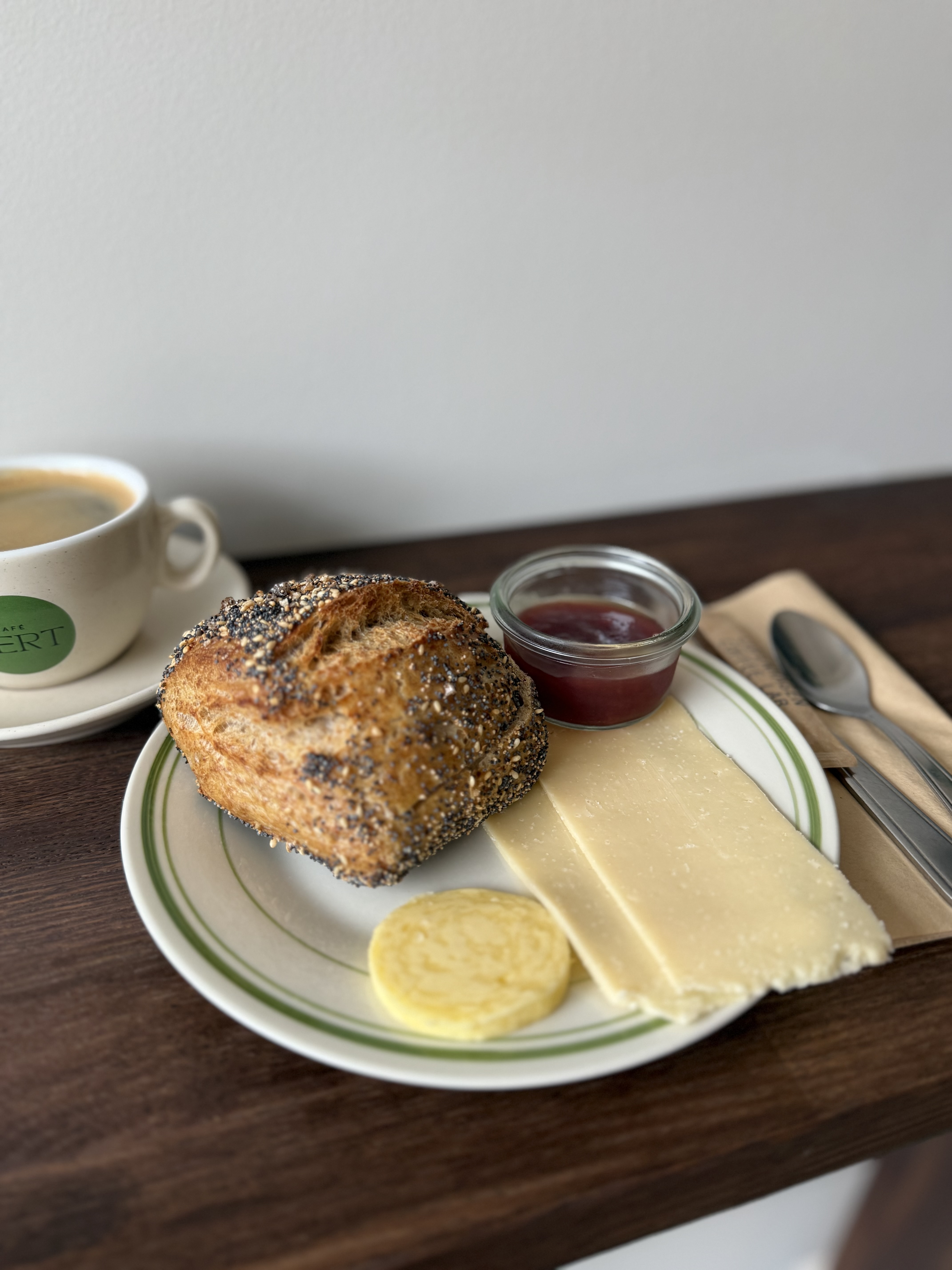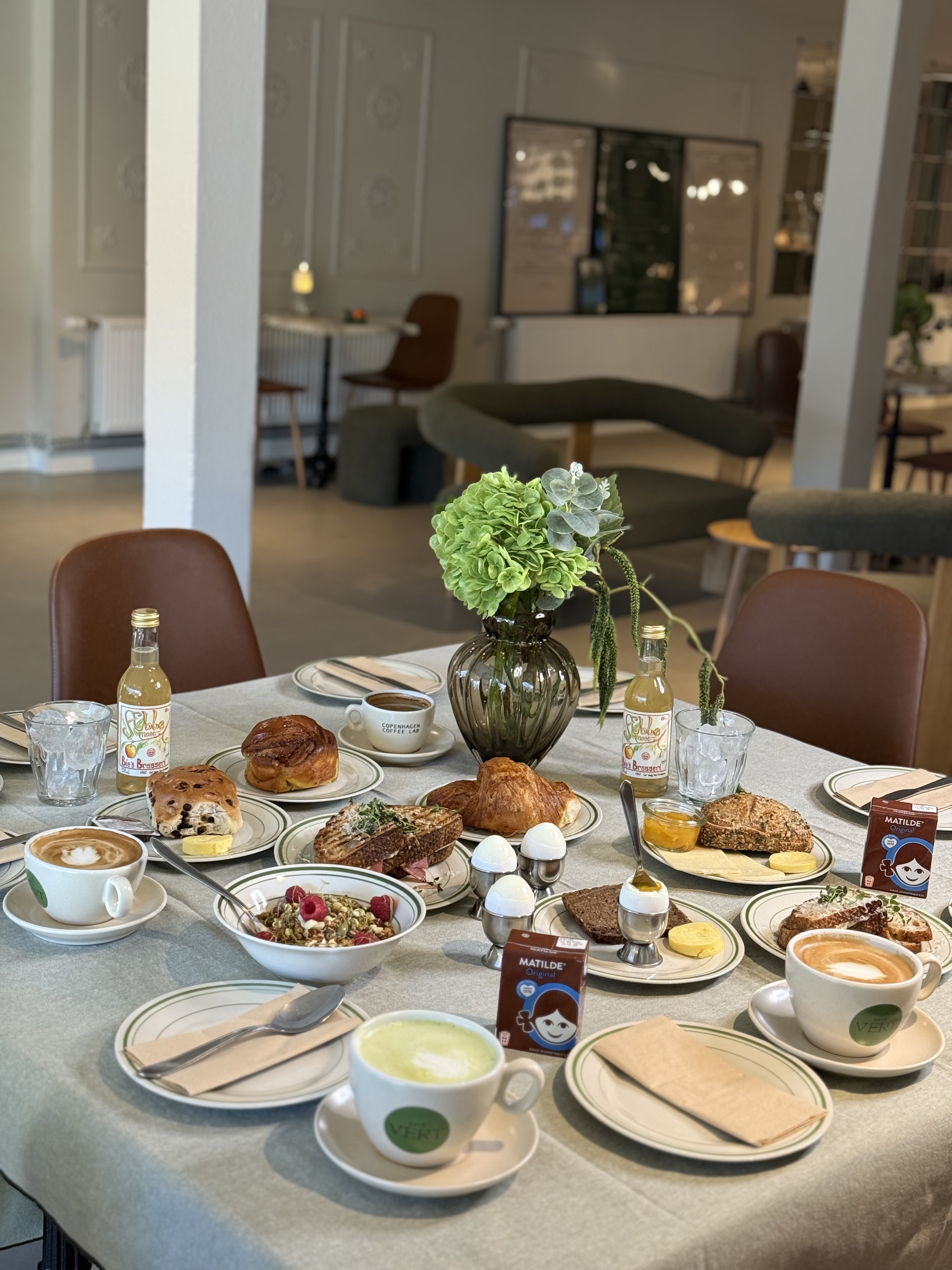 | Bolle Vælg mellem te-, gulerod- el. chokoladebolle Hertil Arla Unika smør m. Læsø salt Serveres med Gl. knas og marmelade +20,- Serveres med Sønderjysk spegepølse +15,- |